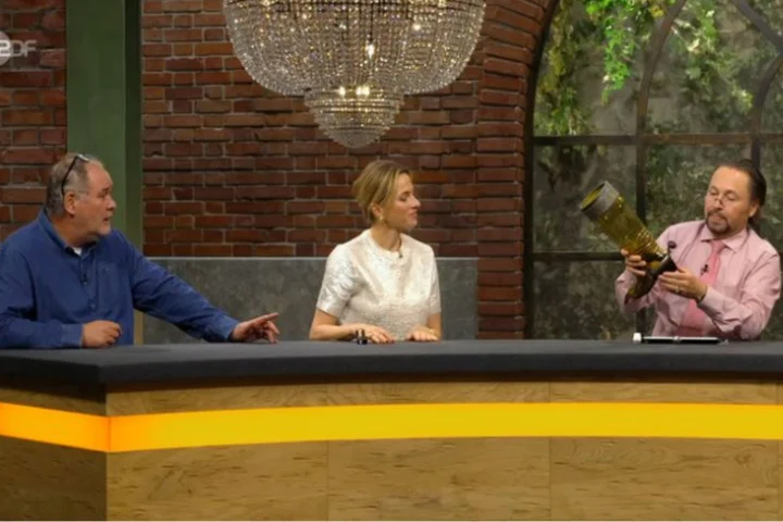 “Ein veritables Scherzglas”, merkt Expertin Friederike Werner an. Einen Hinweis auf den Hersteller findet die 64-Jährige zwar nicht, doch der markante Stil deute für sie auf “Zwiesel” im Bayerischen Wald hin. Als Künstlerin vermutet sie “relativ sicher” Henriette Steigerwald.