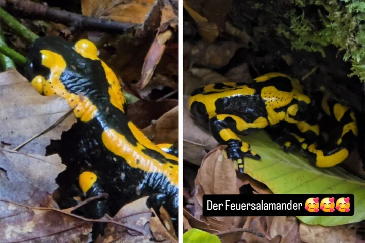 Dann zoomt Kahl heran und man erkennt den kleinen schwarz-gelben Lurch: einen Feuersalamander.