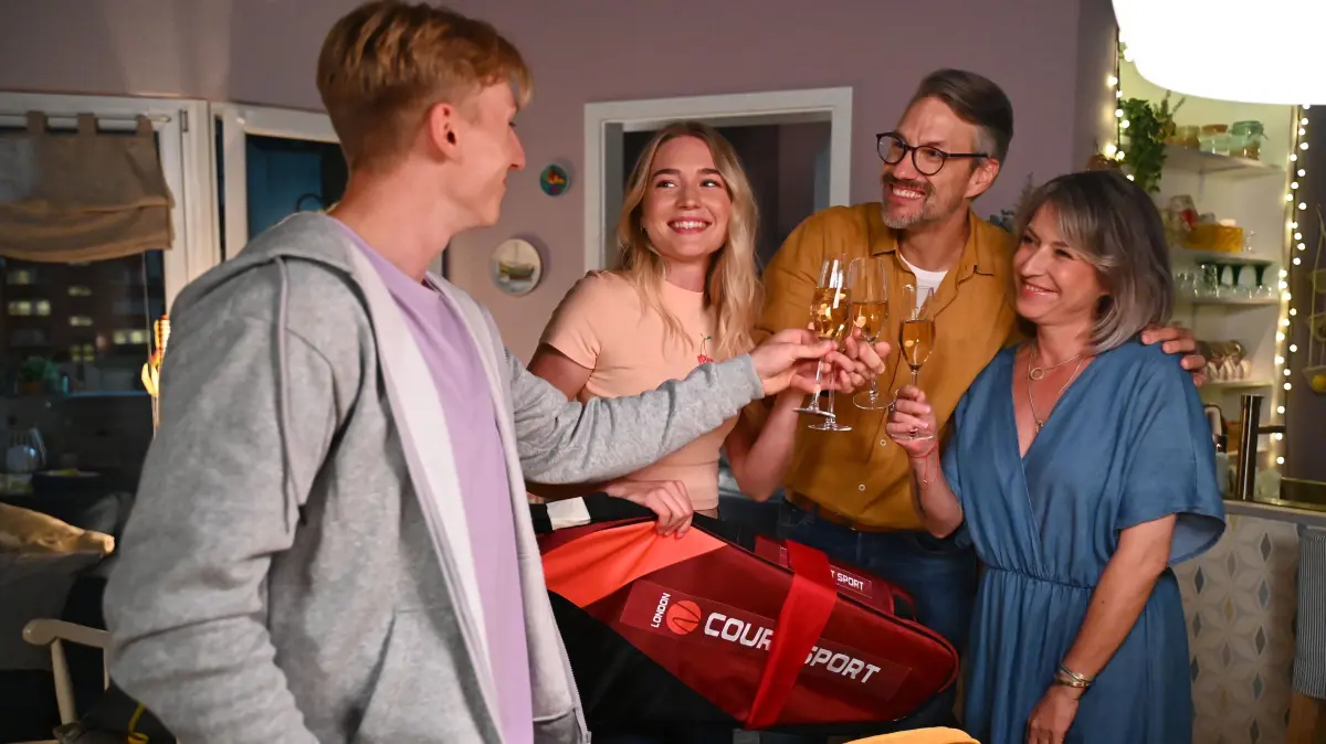 Nele (Maria Müller, 2.v.l.), Lennox (Leif Lunburg, l.), Henning (Stefan Bockelmann) und Daniela (Berrit Arnold) wachsen familiär weiter zusammen.