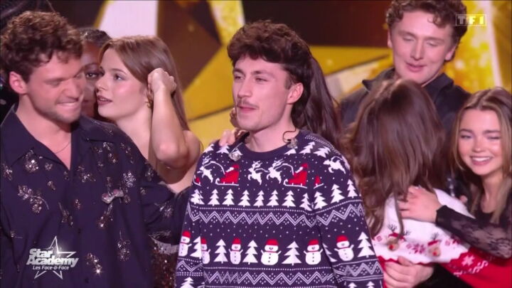 Au terme de la soirée, animée par Nikos Aliagas, et avant de découvrir quel élève serait éliminé de l’aventure, les candidats réunis en chanson sur Merry Christmas and a Happy New Year ont reçu la très belle surprise d’être rejoints en plateau par les anciens candidats ayant quitté le Château ces dernières semaines. L’occasion de voir des scènes d’émotion, surtout entre Jeanne et son grand ami Léo, mais aussi Victor face à Ema, ou encore Noah, Lily mais aussi Théo L. “Ils sont tous là. Ils marqueront à jamais cette promotion de la Star Academy !”, s’est également ému Nikos Aliagas, alors que tous les Académiciens s’enlaçaient et s’embrassaient autour de lui.