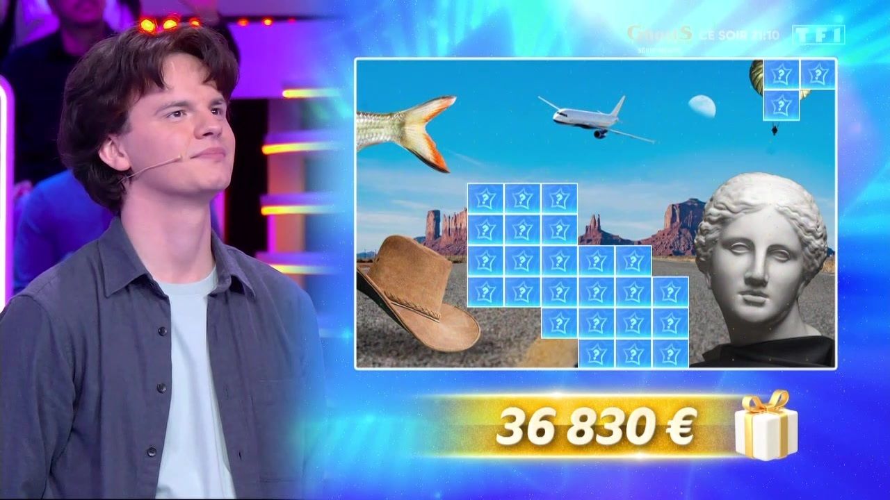 Ce lundi 10 novembre, le jeune homme était une nouvelle fois présent dans l’émission animée par Jean-Luc Reichmann. S’il était à deux doigts de signer un nouveau coup de maître, il s’est finalement contenté d’une victoire à 1000 euros, dont 500 euros sont venus s’ajouter à sa cagnotte personnelle, s’élevant désormais à 230 095 euros. En parallèle, deux nouveaux indices ont fait leur apparition sur l’étoile mystérieuse : une lune et un parachutiste. Ils viennent s’ajouter à ceux dévoilés lors des précédentes émissions, à savoir : un buste d’Aphrodite, un chapeau, une queue de poisson, ainsi qu’un paysage de désert américain en arrière-plan.