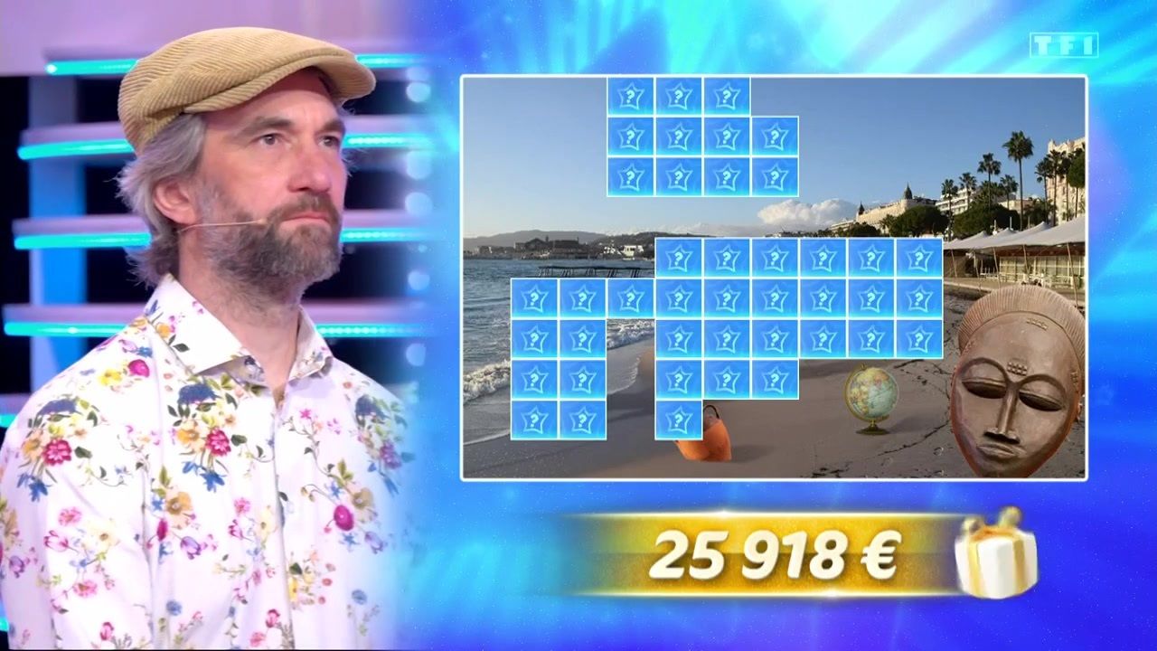 Pour la deuxième fois consécutive, Patrice n’a pas tremblé lors de son face à face contre Corentin, et s’est essayé au Coup de Maître. Mais, contrairement à la veille, l’homme au béret a buté sur une des cinq questions et n’a pu proposer le nom d’une célébrité cachée sous l’étoile mystérieuse. En guise de consolation, il a néanmoins pu dégager quatre nouvelles cases de la fresque XXL, révélant ainsi un nouvel indice. À la mappemonde et au masque africain déjà découverts s’est ajoutée une jarre en terre cuite, tout en bas du décor représentant une plage cannoise au soleil couchant. Il reste encore 41 cases à supprimer, mais le maître de midi, qui possède 6000 euros dans sa cagnotte, se rapproche du but. À condition de s’accrocher à son statut de champion et de faire taire la malédiction depuis le départ d’Emilien.